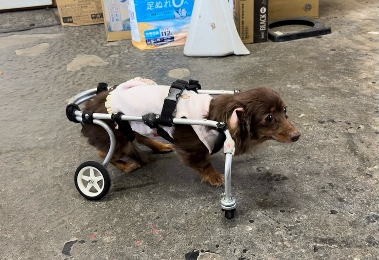 知人のダックスがヘルニアを患い獣医師から依頼を受けた事をきっかけに私の車椅子作りは始まりました。